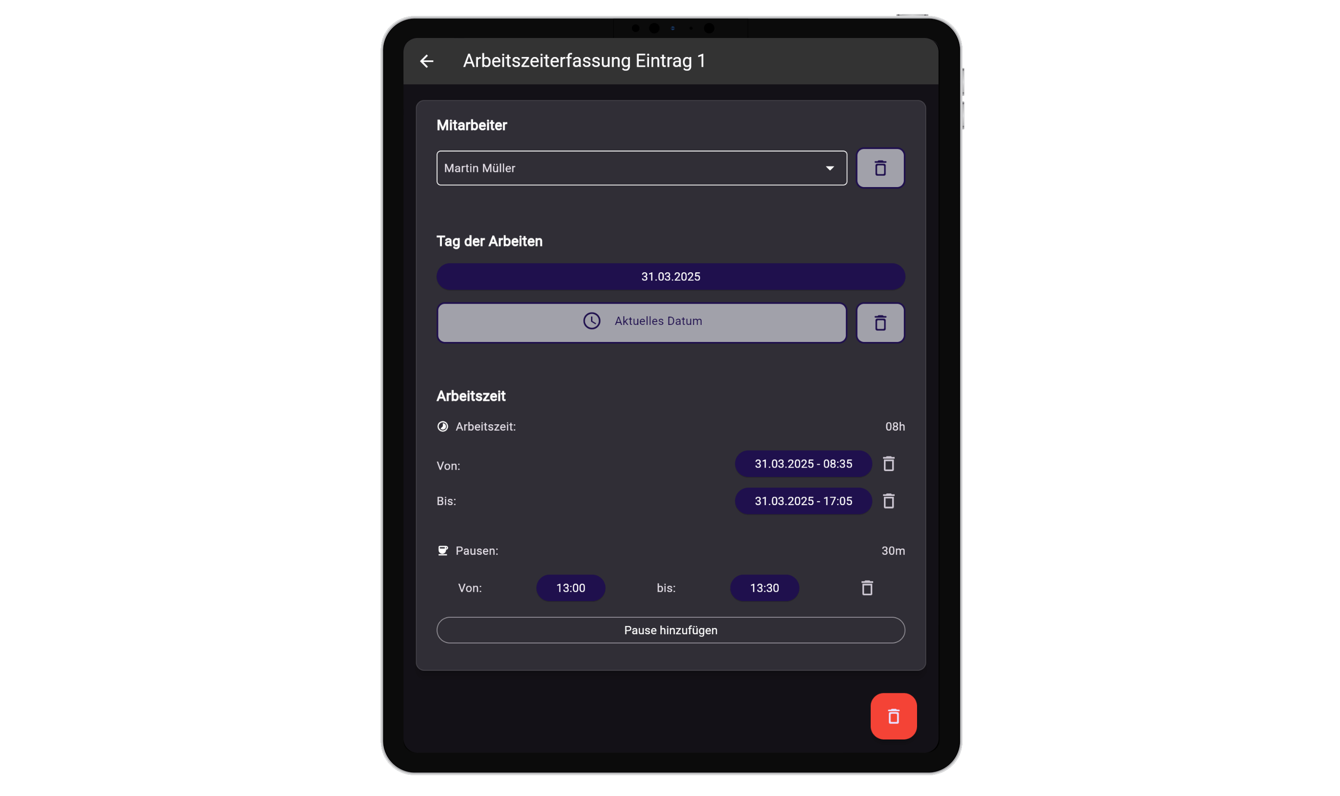 Neuer Baustein ‘Arbeitszeit’Mit der Kombination aus verschiedenen Bausteinen war es auch bisher schon möglich, Arbeitszeiten mit Offpaper zu erfassen. Ab sofort ermöglicht der neue Baustein Arbeitszeit die Erfassung der geleisteten Stunden inklusive einer oder mehrerer Pausen mit einem einzigen Baustein. Als Ausgabe stehen verschiedene Optionen wie z.B. eine Detailausgabe (31.03.2025 09:00 - 18:30 Uhr | Pause: 45m | Arbeitszeit: 08h:45m) oder die reine Nettoarbeitszeit (08h:45m) zur Verfügung.