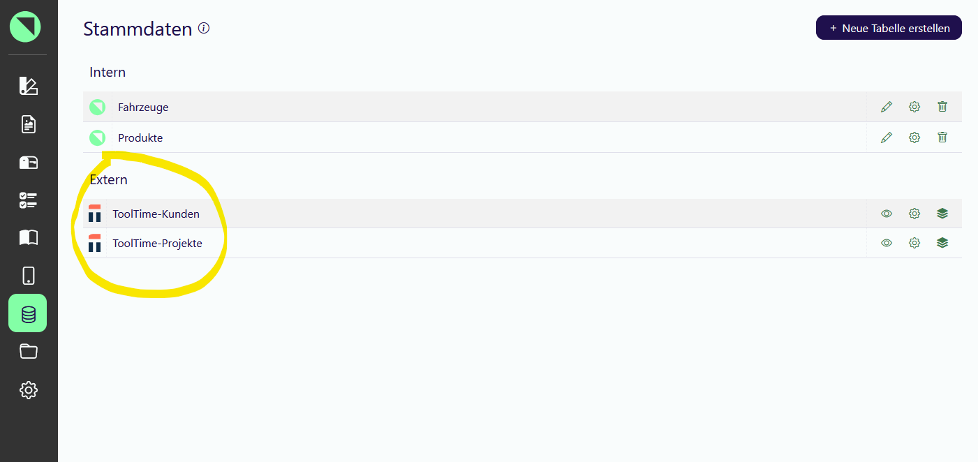 Fertig.Das wars. Wenn dein API-Schlüssel korrekt ist, werden sofort die von dir ausgewählten Tabellen angelegt und synchronisiert. Du kannst sie hier in der Stammdaten-Übersicht sehen und konfigurieren. Die Daten fügst Du mit dem Baustein ‘Stammdatenauswahl’ in deine Formulare ein.
